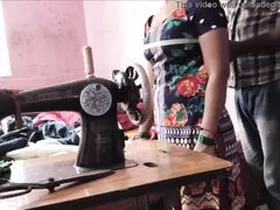 Sexy telugu woman with slim build gets her holes drilled by a tailor on a break.