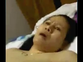 Horny Thai mom with round huge natural tits masturbating