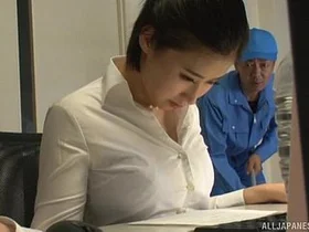 Imanaga Sana, a Japanese secretary, gets intimate with her boss after hours in the office while wearing nylon stockings