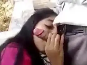 Outdoor scene of a young Indian woman pleasuring herself with a sex toy.