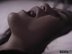 A timid stepsister gives oral pleasure to her well-endowed partner and receives a climax in her anus.