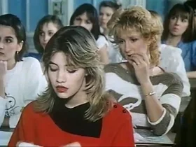 A young female student using her voice while pleasuring herself in school
